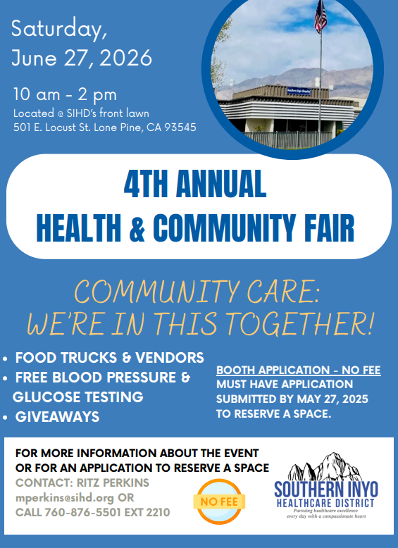 Join Southern Inyo Hospital for community events that offer opportunities to learn more about our services, interact with our healthcare team, and build connections with your community.